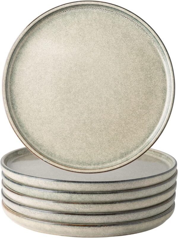 - HANDCRAFTED RAISED DEGE DESIGN: the dinner plates set creates a gorgeous individual shape and minimalist table setting.The plates are great as it makes:beautiful corlor and raised shape,sturdy.cozy and rustic. It’s easier to handle and Any large size food can be easily put in and easy to spoon out everything with this shape.The shape is designed to stack and nestle nicely in your cupboard or shelves, let your food look even more delicious, and make you happy every day.