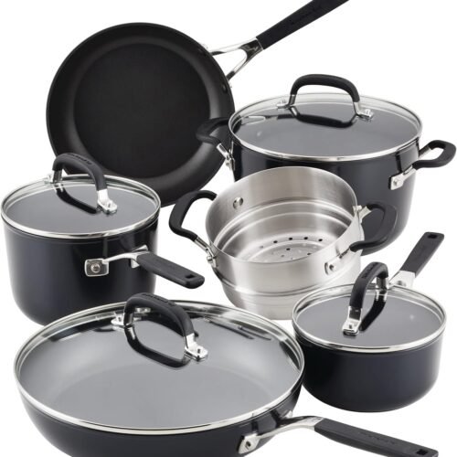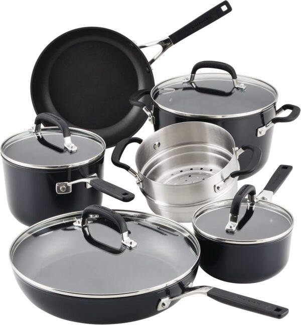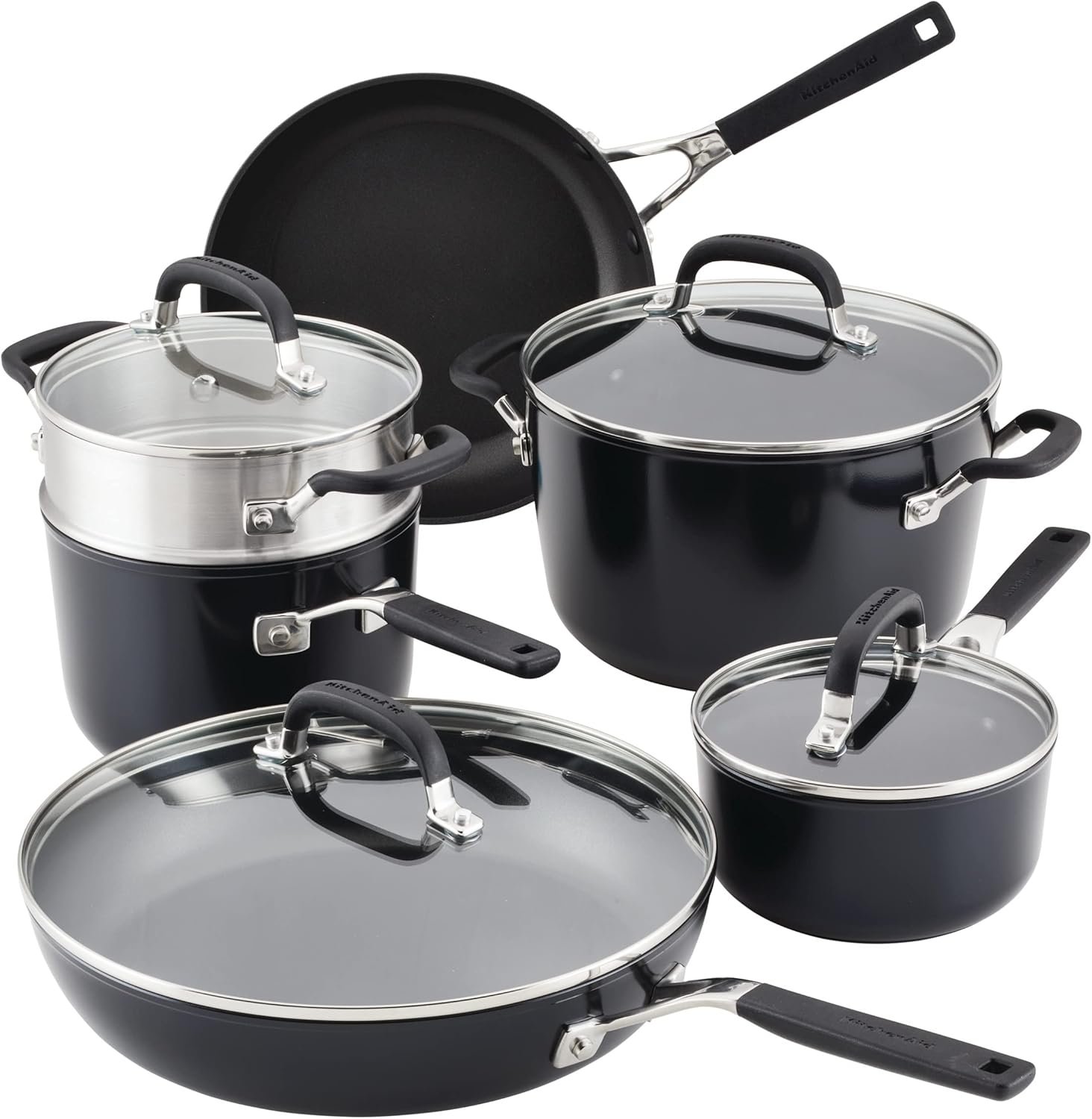 KitchenAid Hard Anodized Nonstick Cookware/Pots and Pans Set, 10 Piece – Matte Black