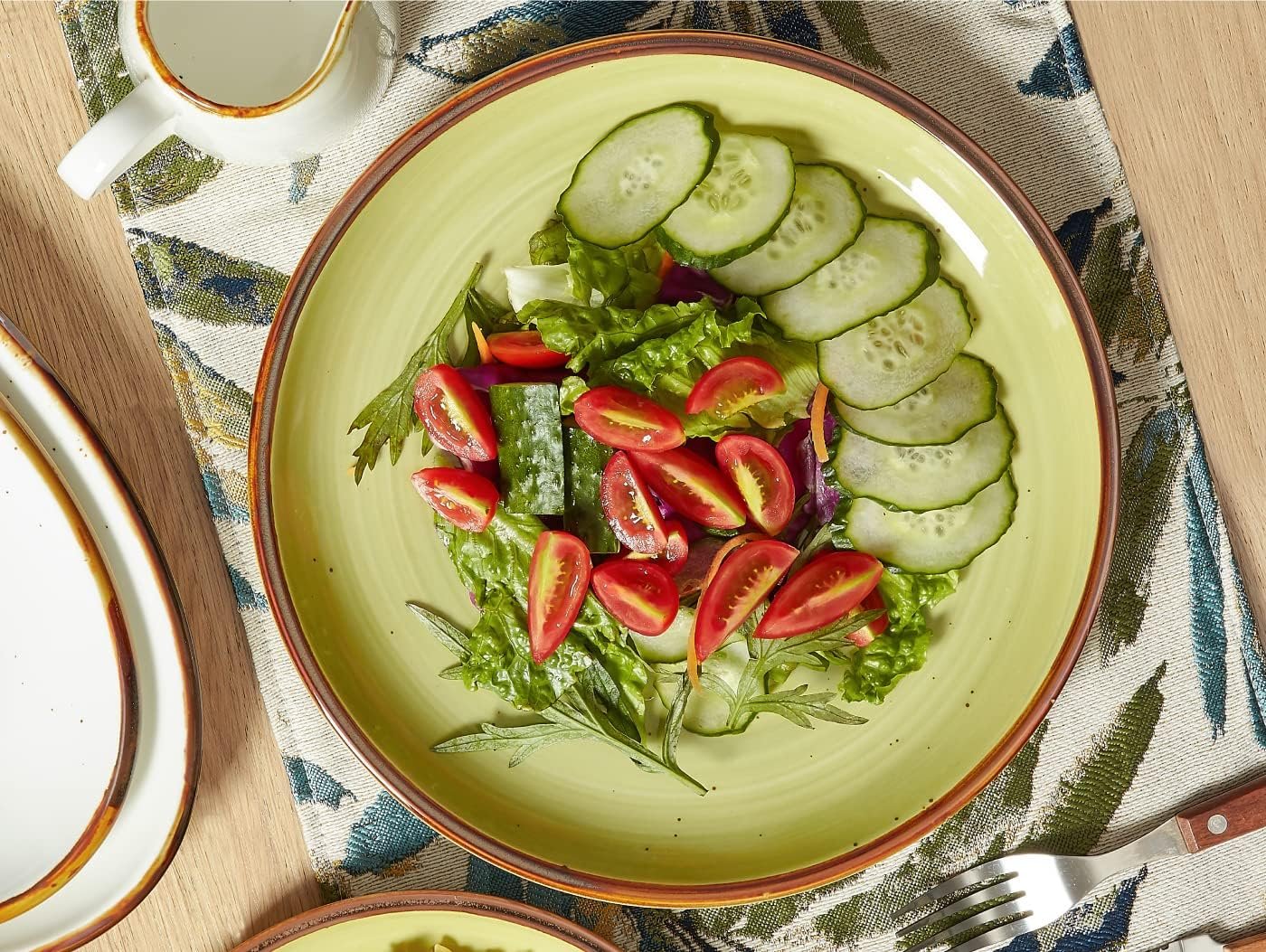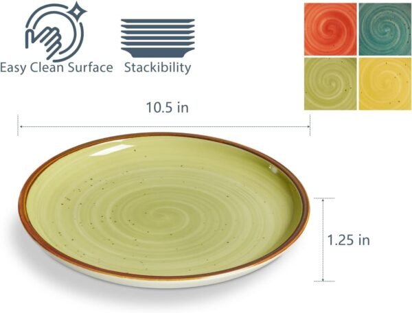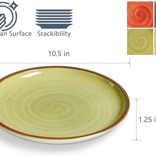 - 【Well Made Rustic Style】: With a distinctive look and eye-catching color that distinguishes this plate set from others, each salad plate is decorated with chestnut brown speckle and a rustic edge in bronze, making it a classic retro look. 4 colors inset – blue, red, green and yellow, a nice addition to your dining table and kitchen.