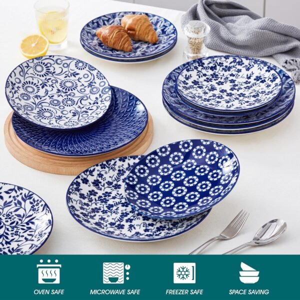 - 【Safety and Durable】 Our glazes are lead free and non-toxic, meaning you will never have to worry about lead leaching into your body system and making you sick. This plates set are fired at a high temperature to maximize the strength of the porcelain. Porcelain also won’t absorb odor or bacteria.