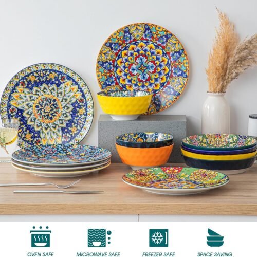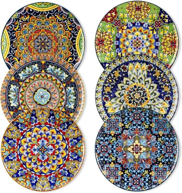 - 【Vibrant and Colorful Designs】Vancasso bohemian style plates boast enchanting and intricate designs that capture the free-spirited essence of Bohemian culture.The lively colors and artistic patterns evoke a sense of joy and positivity, enhancing your dining experience with a burst of energy and happiness.