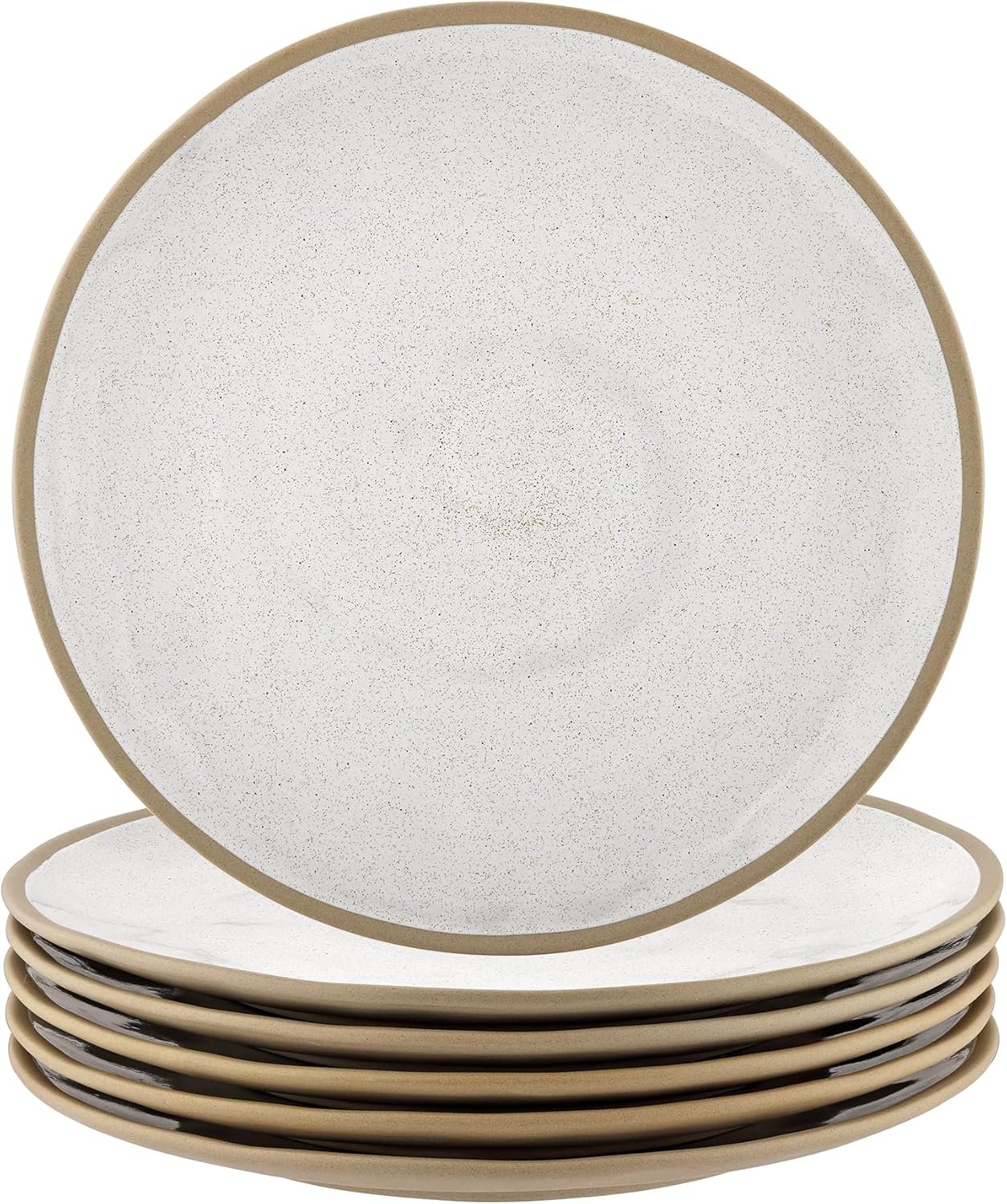 - Handcrafted Speckled Glaze with Rustic Charm – Finished with a subtle, natural speckled glaze and smooth matte surface, these 10.5-inch ceramic plates bring a warm, handcrafted feel to your table—effortlessly blending rustic character with modern simplicity